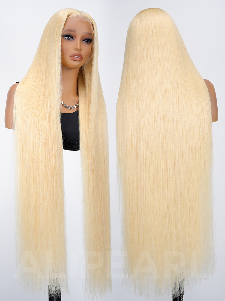 - 40 Inch Long Blonde Wigs 300% Density 613 Straight Human Hair Wigs 13x6 Lace