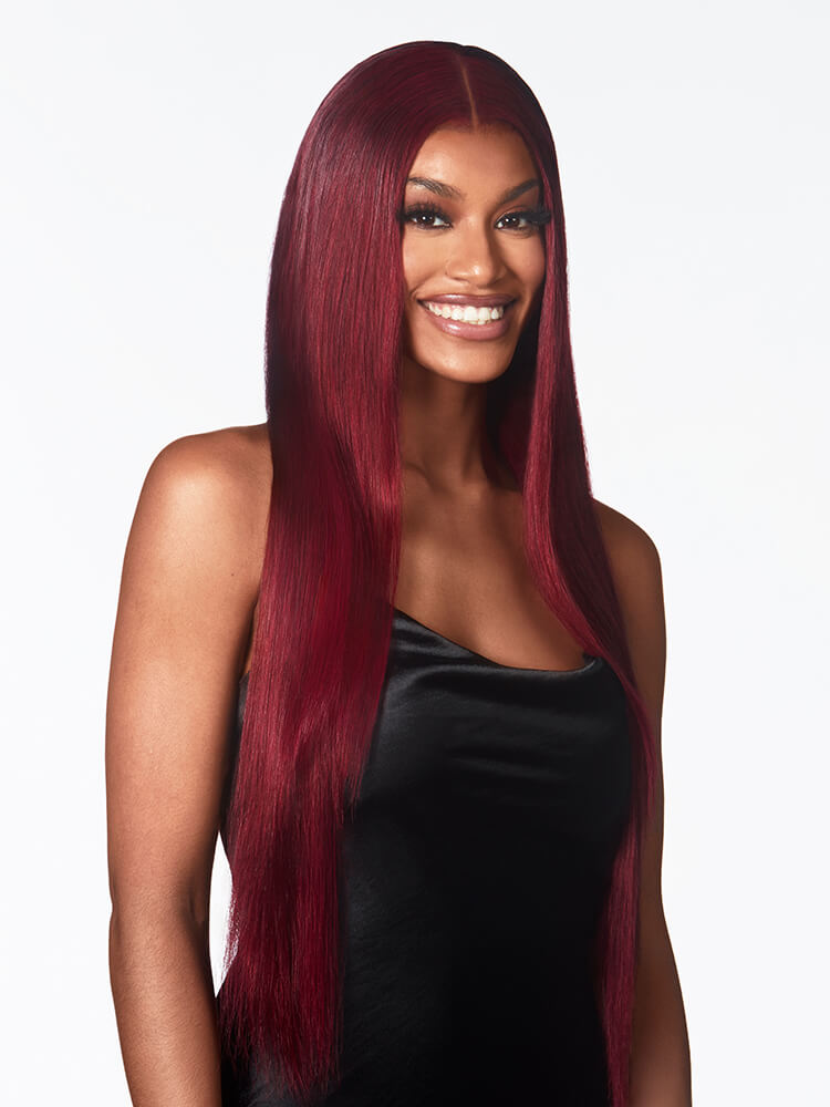 - 99J Hair Color LY Super Thin Transparent Lace Front Wig Burgundy Wig Colored