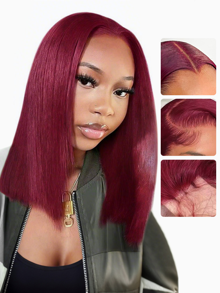- Burgundy 99J Straight Short Bob Lace Front Wigs For Black