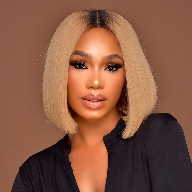- 1B/27 Honey Blonde Straight Frontal Bob Wigs With Dark Roots Human Hair