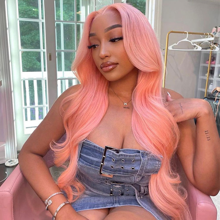 - Pink Color Wig Light Pink Body Wave Transparent Lace Wigs With Natural